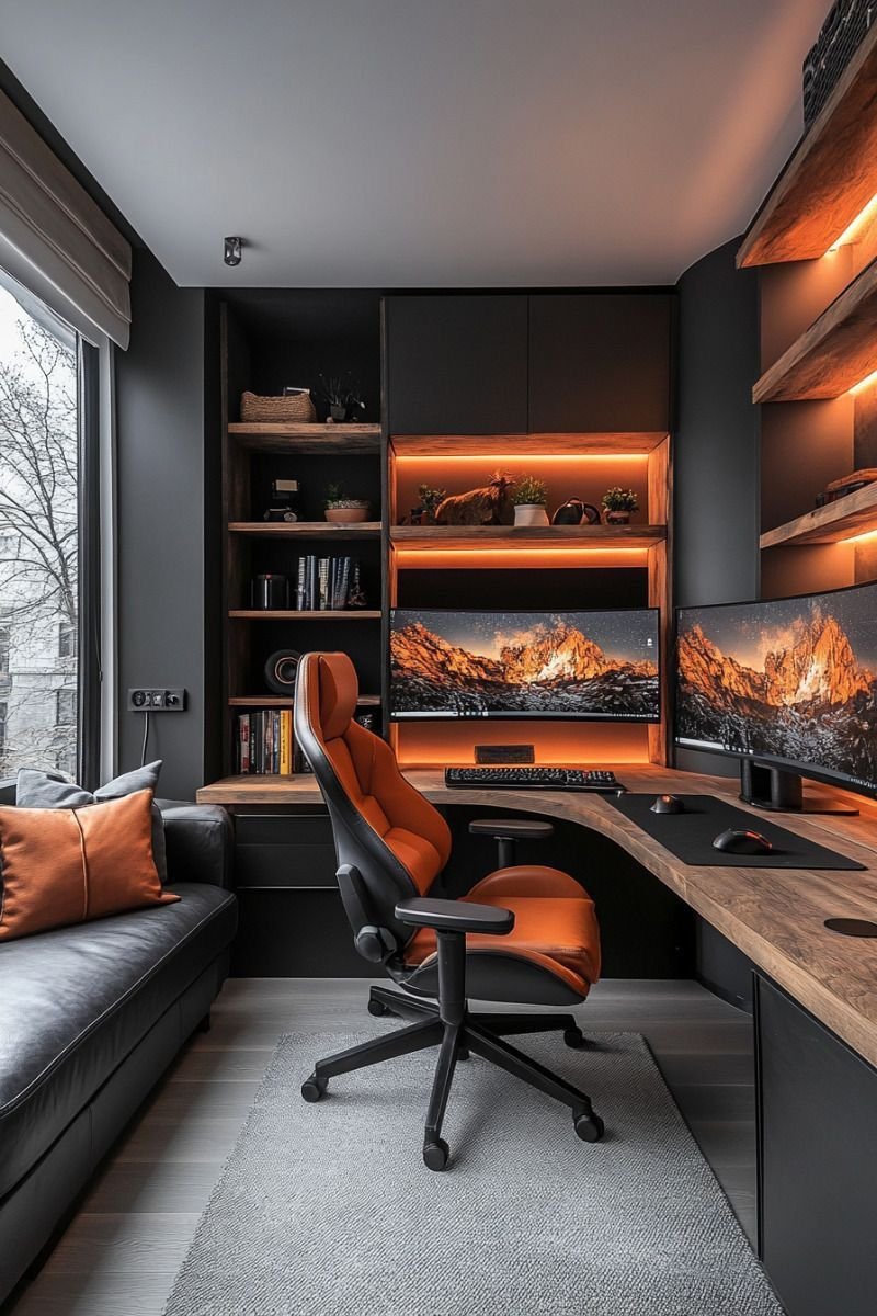Diseño minimalista con cajones ocultos y cable management.